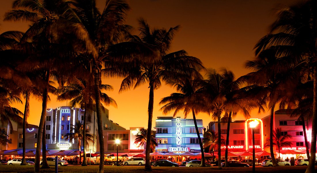 Miami is an international city at the southeast tip of Florida. Its Cuban influence is reflected in the cafes and cigar shops along Calle Ocho de Little Havana. On the barrier islands on the other side of the turquoise waters of Biscayne Bay is Miami Beach, which is home to South Beach. This prestigious neighbourhood is famous for its very colourful art deco buildings, white sand beaches, seaside hotels and fashionable nightclubs.